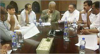 തിരുവനന്തപുരം: കെ.പി.സി.സി പ്രസിഡന്റ് എം.എം.ഹസന്റെ നേതൃത്വത്തിലുള്ള യു.ഡി.എഫ് പ്രതിനിധി സംഘം ഓഖി ദുരന്തം വിലയിരുത്താനെത്തിയ കേന്ദ്ര പ്രതിനിധി സംഘവുമായി ചര്ച്ച നടത്തി. ഇന്ന് രാവിലെ പ്രതിനിധി സംഘം താമസിക്കുന്ന ഹില്ട്ടന് ഹോട്ടലിലെത്തിയാണ് യു. ഡി.എഫ് സംഘം നിവേദനം നല്കുകയും ചര്ച്ച നടത്തുകയും ചെയ്തത്.