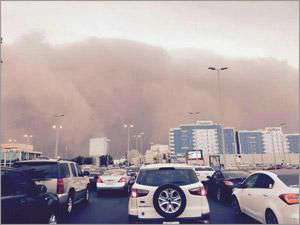 ബുധനാഴ്ച വൈകിട്ട് ഏഴ് മണിവരെ പൊടിക്കാറ്റുണ്ടാകുമെന്നാണ് അറിയിപ്പ്. രാത്രി മുഴുവന് നീണ്ടു നില്ക്കുന്ന കാറ്റ് ചിലപ്പോള് വ്യാഴാഴ്ച രാവിലെ വരെ നീണ്ടേക്കാം. ചിലയിടങ്ങളില് മഴ പെയ്യാനും സാദ്ധ്യതയുണ്ട്. രാജ്യത്തിന്റെ കിഴക്കന് മേഖലയില് ന്യൂനമര്ദ്ദം രൂപം കൊണ്ടിട്ടുണ്ട്. പൊടിക്കാറ്റ് വീശുന്നതിനാല് കടല് ക്ഷോഭത്തിനും സാദ്ധ്യതയുണ്ട്.