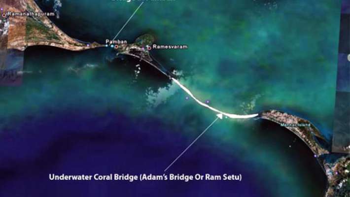തമിഴ്നാട്ടിലെ രാമേശ്വരത്തിന് സമീപമുള്ള പാമ്ബന് ദ്വീപ് മുതല് ശ്രീലങ്കക്ക് വടക്കുള്ള മന്നാര് വരെയുള്ള 30 കിലോമീറ്റര് നീളമുള്ള ചുണ്ണാമ്ബുകല്ലുകളുടെ തിട്ടയാണ് രാമസേതു. സീതയെ രക്ഷിക്കാനായി ശ്രീരാമന് ലങ്കയിലേക്ക് കടക്കാന് വാനരസേന നിര്മിച്ച പാലമാണ് രാമസേതു എന്നാണ് പറയപ്പെടുന്നത്.