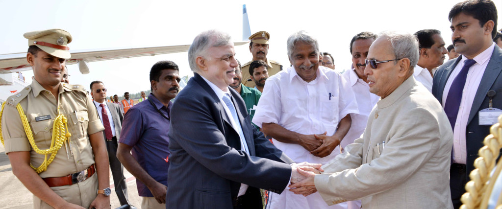 മലപ്പുറം കൊച്ചി, തൃശൂര്, കോഴിക്കോട് എന്നിവിടങ്ങളില് വിവിധ പരിപാടികളില് പങ്കെടുക്കാനെത്തിയ രാഷ്ട്രപതി പ്രണബ്കുമാര് മുഖര്ജിക്ക് കരിപ്പൂര് വിമാനത്താവളത്തില് സംസ്ഥാന സര്ക്കാറിന്റെ ഔദ്യോഗിക യാത്രയയപ്പ് നല്കി. ഫെബ്രുവരി 26 നാണ് രാഷ്ട്രപതി കൊച്ചിയിലെത്തിയത്. തുടര്ന്ന് തൃശൂരിലും 27 ന് കോഴിക്കോട് സൈബര് പാര്ക്കിലും നടന്ന വിവിധ പരിപാടികള്ക്ക് ശേഷം 3.35-ന് കരിപ്പൂര് വിമാനത്താവളത്തിലെത്തിയ രാഷ്ട്രപതി ഇന്ത്യന് എയര് ഫോഴ്സിന്റെ പ്രത്യേക വിമാനത്തില് ഡല്ഹിക്ക് യാത്രയായി. ഗവര്ണര് പി. സദാശിവം, മുഖ്യമന്ത്രി ഉമ്മന്ചാണ്ടി എന്നിവരുടെ നേതൃത്വത്തില് ജനപ്രതിനിധികളും ഉദ്യോഗസ്ഥരും രാഷ്ട്രപതിക്ക് യാത്രയയപ്പ് നല്കി. എം.കെ. രാഘവന് എം.പി., കെ. മുഹമ്മദുണ്ണി ഹാജി എം.എല്.എ., സംസ്ഥാന വനിതാ കമ്മീഷന് ചെയര്പെഴ്സണ് റോസക്കുട്ടി, ചീഫ് സെക്രട്ടറി ജിജി തോംസന്, ഡി.ജി.പി ടി.പി. സെന്കുമാര്, സ്റ്റേറ്റ് പ്രൊട്ടോക്കോള് ഓഫീസര് ടി.പി. വിജയകുമാര്, ജില്ലാ കലക്ടര് ടി. ഭാസ്കരന്, ജില്ലാ പോലീസ് സൂപ്രണ്ട് കെ. വിജയന് എന്നിവര് സന്നിഹിതരായി.