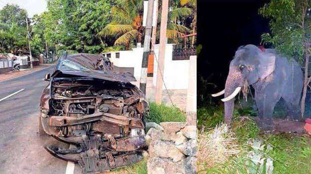 ആനയെ കാറിടിച്ചു, വേദനയില്‍ പുളഞ്ഞ ആന ഇരുന്നത് കാറിന് മുകളില്‍