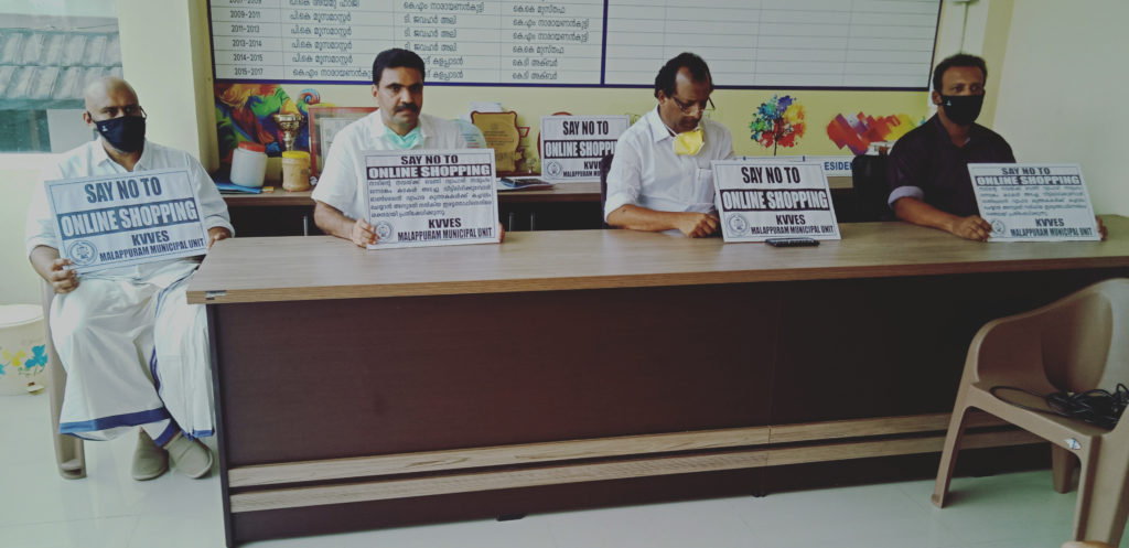 ഓണ്ലൈന് ഷോപ്പിംഗ് സെന്ററുകള്ക്ക് ആവശ്യസാധനങ്ങള്, ഗൃഹോപകരണങ്ങള്, മൊബൈല്ഫോണ് തുണിത്തരങ്ങള് അടക്കം എല്ലാവിധ സാധനങ്ങളും കച്ചവടത്തിന് അവസരം നല്കുകയും, എന്നാല് ഇത്തരം സാധനങ്ങള് വില്പ്പന നടത്തുന്ന ചെറുകിട വ്യാപാര സ്ഥാപനങ്ങള്ക്ക് അനുമതി കൊടുക്കാതിരിക്കുകയും ചെയ്യുന്ന കേന്ദ്രസര്ക്കാര് നടപടിക്കെതിരെയാണ് കേരള വ്യാപാരി വ്യവസായി ഏകോപന സമിതിയുടെ സംസ്ഥാന കമ്മിറ്റി ആഹ്വാനപ്രകാരം പ്രതിഷേധദിനം ദിനം നടന്നത്. സംസ്ഥാന കമ്മിറ്റിയുടെ ആഹ്വാനപ്രകാരം ജില്ലാ ആസ്ഥാനങ്ങളിലെ ഓഫീസുകളിലും യൂണിറ്റ് ഓഫീസുകളിലും ആയിരുന്നു പ്രതിഷേധം ദിനം ആചരിച്ചത്. കേന്ദ്ര സര്ക്കാര് നടപ്പിലാക്കുന്ന ഇത്തരം തീരുമാനങ്ങള് ക്കെതിരെ ശക്തമായ പ്രതിഷേധം തുടരുമെന്ന് വ്യാപാരി വ്യവസായി ഏകോപന സമിതി മലപ്പുറം യൂണിറ്റ് പ്രസിഡന്റ് പരി ഉസ്മാര് പറഞ്ഞു. കേന്ദ്രസര്ക്കാര് ഈ നീക്കത്തില് നിന്നും പിന്മാറാന് തയ്യാറാകാത്തപക്ഷം ലോക്ക്ഡൗണ് കഴിയുന്ന പക്ഷം ശക്തമായ സമരവുമായി മുന്നോട്ട് പോകാനാണ് വ്യാപാരികളുടെ തീരുമാനം.