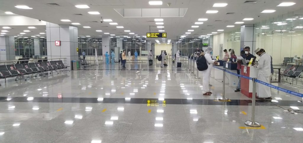 കോവിഡ് ജാഗ്രത ഉറപ്പുവരുത്തി ക്രൈം ബ്രാഞ്ച് എസ്.പി. കെ.വി. സന്തോഷ് കുമാര്‍,  അസിസ്റ്റന്റ് കലക്ടര്‍ രാജീവ് കുമാര്‍ ചൗധരി, ജില്ലാ മെഡിക്കല്‍ ഓഫീസര്‍ ഡോ. കെ. സക്കീന, ഡെപ്യൂട്ടി കലക്ടര്‍ ഡോ. ജെ.ഒ. അരുണ്‍, കോവിഡ് ലെയ്സണ്‍ ഓഫീസര്‍ ഡോ. എം.പി. ഷാഹുല്‍ ഹമീദ്, വിമാനത്താവള ഡയറക്ടര്‍ കെ. ശ്രീനിവാസറാവു തുടങ്ങിയവര്‍ യാത്രക്കാരെ സ്വീകരിച്ചു.