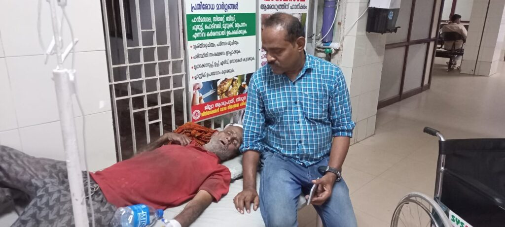മുജീബ് താനാളൂര്. സ്ഥലമോ വീടോ അറിയാത്ത മലയാളി എന്ന് സംശയിക്കുന്ന 70 വയസ്സില് അധികം പ്രായം തോന്നിക്കുന്ന വയോധികനെ ഇന്ന് രാവിലെ മുതലാണ് മുച്ചിക്കല് പാലത്തിന് സമീപം പ്രദേശവാസികള് കണ്ടത്. പ്രദേശവാസികള് താനാളൂര് ഗ്രാമപഞ്ചായത്ത് പ്രസിഡണ്ട് കെ എം മല്ലികയെ വിവരം അറിയിക്കുകയായിരുന്നു. ഗ്രാമ പഞ്ചായത്ത് പ്രസിഡണ്ട് കെ. എം മല്ലിക ജീവകാരുണ്യ പ്രവര്ത്തകനായ മുജീബ് താനാളൂരിനെ വിവരം അറിയിച്ചത്. മുജീബ് താനാളൂര്. എത്തിയാണ് പ്രാഥമിക ശുശ്രൂഷകളും വെള്ളവും നല്കി വയോധികനെ ജില്ലാ ആശുപത്രിയിലേക്ക് മാറ്റിയത്.ആശുപത്രിയില് എത്തിയ വയോധികന് അപകടനില തരണം ചെയ്തിട്ടുണ്ട്. ഇദ്ദേഹത്തെക്കുറിച്ച് വിവരമറിയുന്നവര് തിരൂര് പോലീസ് സ്റ്റേഷനിലോ ജില്ലാ ആശുപത്രിയിലെ ബന്ധപ്പെടണം തിരൂര് തഹസില്ദാര് പി ഉണ്ണി, സര്കില് ഇന്സ്പെക്ടര് ഓഫ്, പോലീസ് ജിജോ, ജില്ലാ ആശുപത്രി സൂപ്രണ്ട് ഡോ: ബേബി ലക്ഷ്മീ എന്നിവര് ആവശ്യമായ നടപടികള് സ്വീകരിച്ചു