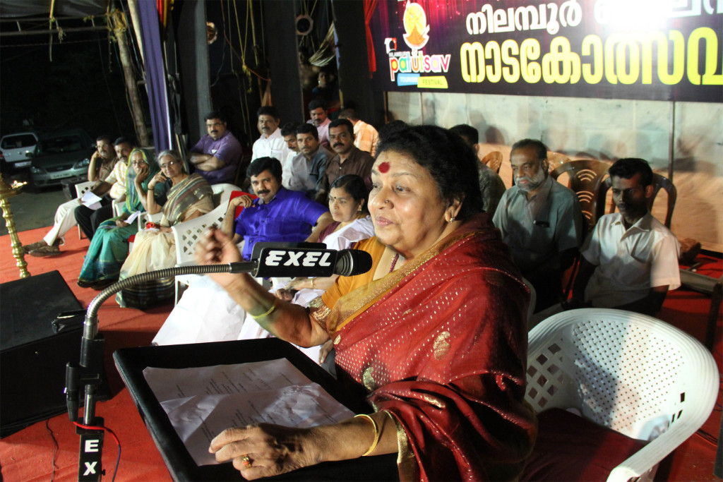 നിലമ്പൂര്‍ പാട്ടുത്സവ് ടൂറിസം ഫെസ്റ്റിവലിന്റെ ഭാഗമായ നിലമ്പൂര്‍ ബാലന്‍ നാടകോത്സവം ഉദ്ഘാടനം ചെയ്തു പ്രസംഗിക്കുകയായിരുന്നു കവിയൂര്‍ പൊന്നമ്മ. നഗരസഭാ ചെയര്‍പേഴ്‌സണ്‍ പത്മിനി ഗോപിനാഥ് ആധ്യക്ഷം വഹിച്ചു. പാട്ടുത്സവ് ജനറല്‍ കണ്‍വീനര്‍ ആര്യാടന്‍ ഷൗക്കത്ത് മുഖ്യപ്രഭാഷണം നടത്തി. നിലമ്പൂര്‍ ആയിഷ, നിലമ്പൂര്‍ ബാലന്റെ സഹധര്‍മ്മിണി വിജയലക്ഷ്മി, നിലമ്പൂര്‍ മണി, കൗണ്‍സിലര്‍ ഇ.എസ് മുജീബ്, വ്യാപാരി പ്രതിനിധികളായ എ.കെ ഷൗക്കത്തലി, ഷാജി കെ. തോമസ് പ്രസംഗിച്ചു. ഉദ്ഘാടന ചടങ്ങിനു ശേഷം  കോഴിക്കോട് പൂക്കോട് കലാലയത്തിന്റെ ‘എന്ദരോ മഹാനുഭാവുലു’ നാടകം അവതരിപ്പിച്ചു. ഇന്ന് കോഴിക്കോട് രംഗമിത്രയുടെ ‘ഉച്ചവെയില്‍’ നാടകം അരങ്ങേറും.