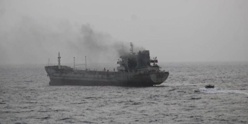 ഗുജറാത്തിൽ നിന്ന് പുറപ്പെട്ട ചരക്ക് കപ്പലിന് ഒമാന് ഉള്ക്കടലില് വച്ച് തീപ്പിടിച്ചു. ചരക്കു കപ്പലിന് രക്ഷയായി ഇന്ത്യന് യുദ്ധക്കപ്പലായ ഐഎന്എസ് തബര്.